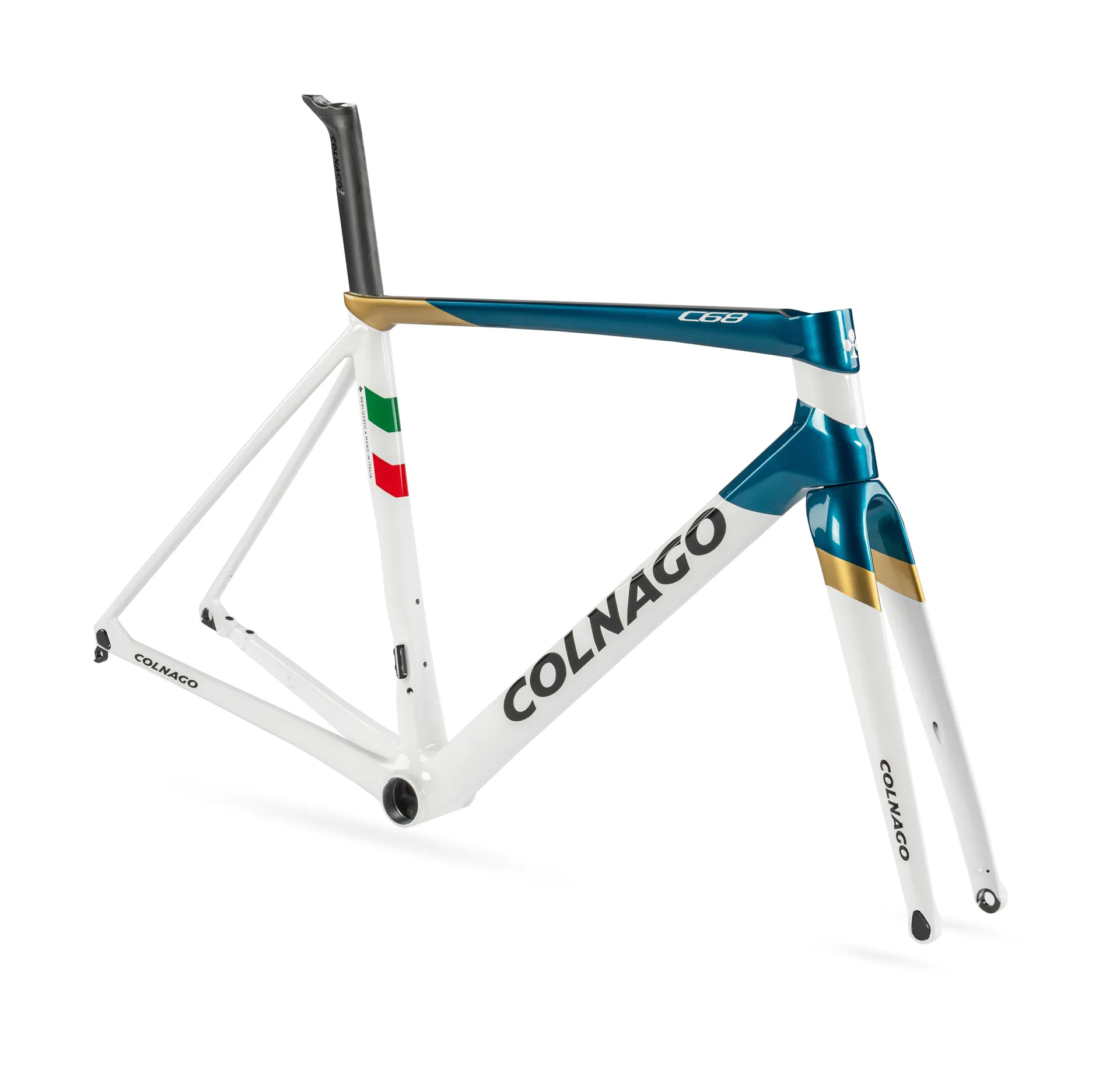 The number of parts that constitute the frame is the same as with the previous C series even though from an aesthetic point of view its line may be more similar to that of a frame manufactured in one piece. The choice was dictated by the search for a modern look but always remaining desirable to the traditional Colnago customer thus widening the range of purchasing possibilities.