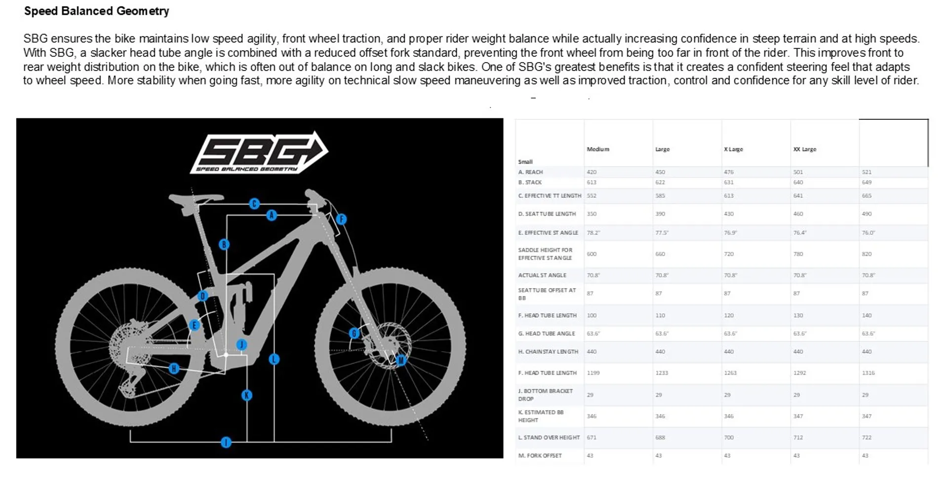 SBG ensures the bike maintains low speed agility, front wheel traction, and proper rider weight balance while actually increasing confidence in steep terrain and at high speeds
